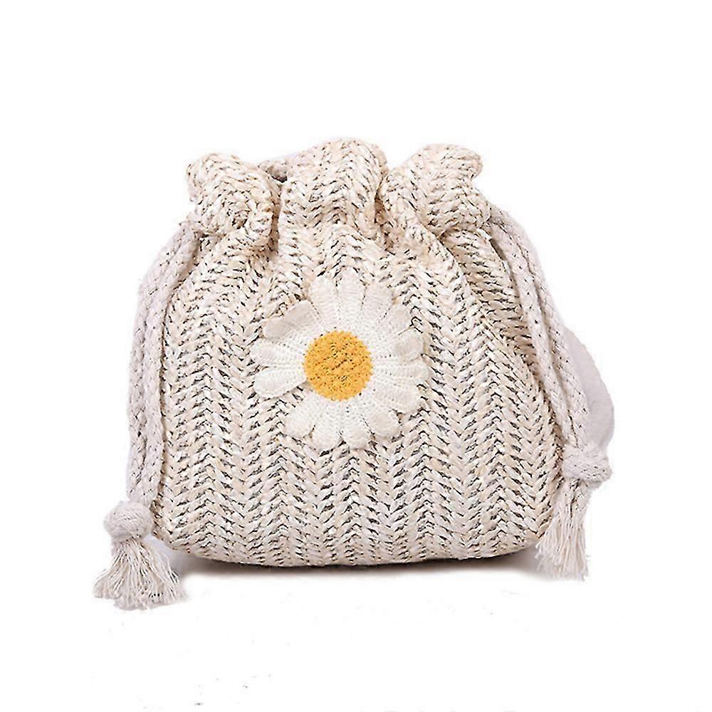 Drawstring Straw Beach Bags Flower Embroidery Bags Ladies Lace Crossbody Handbags For Travel