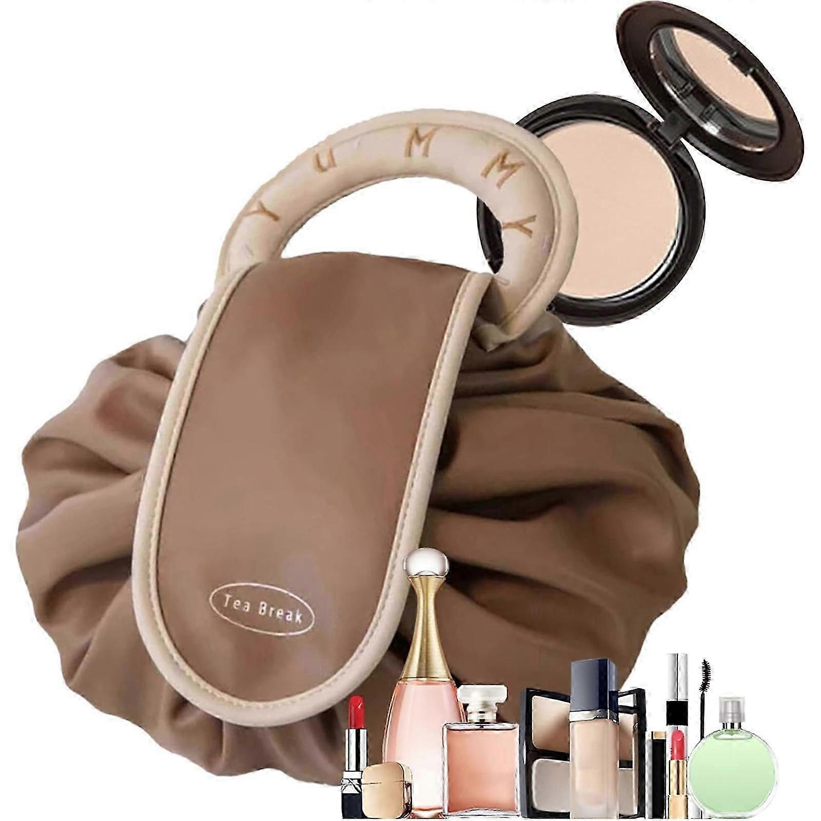 Drawstring Makeup Bag, Lay Flat Waterproof Travel Makeup Organizer Pouch, Large Capacity Cosmetic Bag Toiletry Organizer for Women