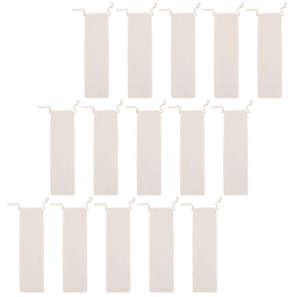 Drawstring Storage Bag Simple Cotton Linen Material Home Use Kitchen Supplies 9.8×3.1×0.2in Tableware Storage 15Pcs