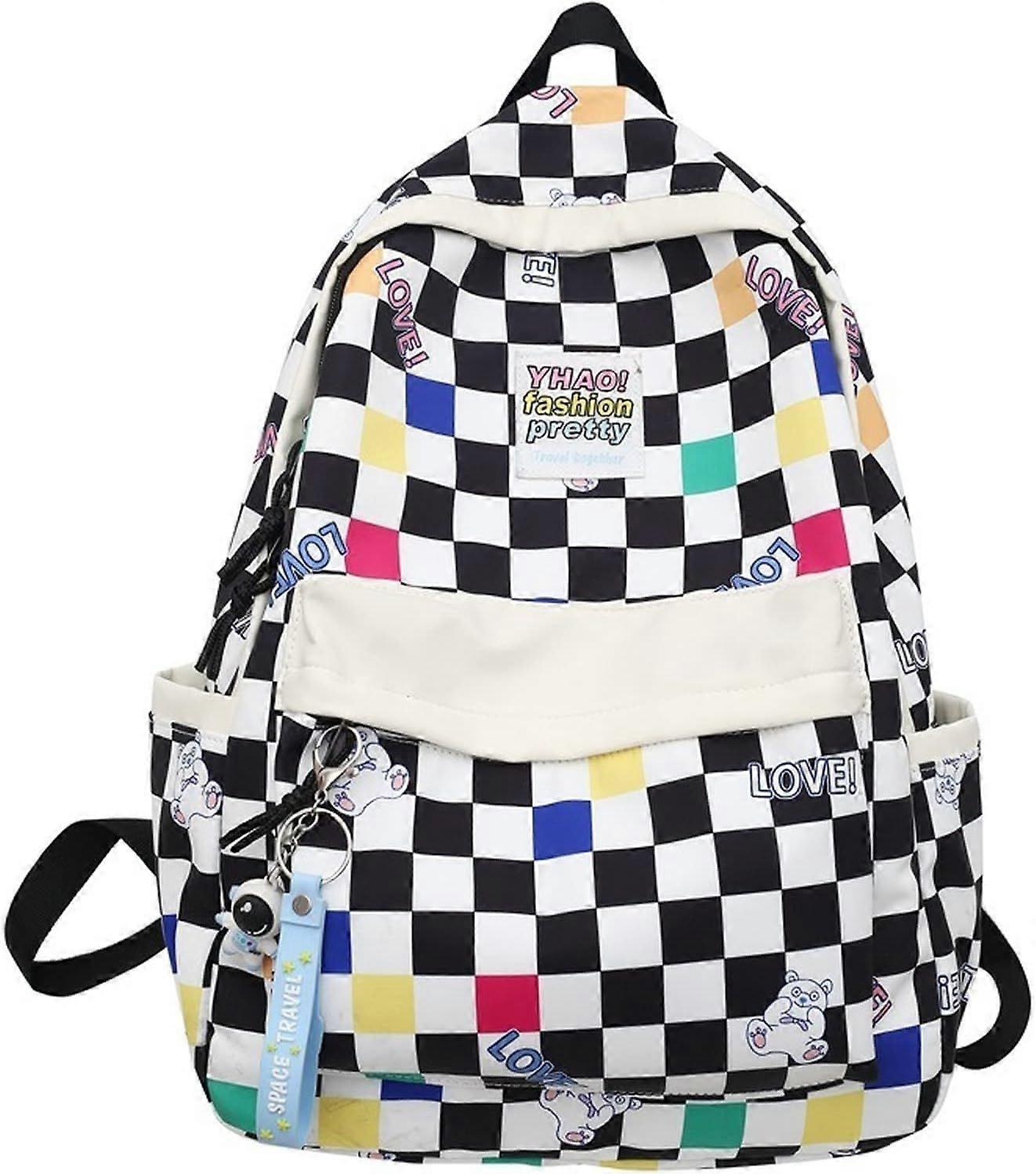 Checkered Backpack Gingham School Bags Back to School Supplies for Students (Multicolor)