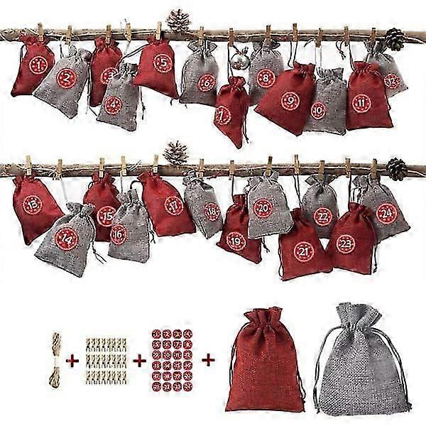 Advent Calendar To Fill Cloth Bag, 1-24 Advent Number Stickers Jute Gift Bag Christmas Calendar Set Craft Bag With Drawstring;Versatile: In addition to being used as an advent calendar, it is also perfect for wedding decorations, baptisms, birthdays, parties, thanksgiving, giveaways and other exciting events. perfect for wedding decorations, baptism, baby shower, thanksgiving, giveaways and other exciting events.;Natural Material: Made of natural linen without unpleasant smell, durable and durable. Jute bags can also be used again and again to store jewelry, cosmetics, coins and crafts or other small items.;Storage Bag: For storing jewelry, cosmetics, coins, crafts or other small items.; Drawstring: Drawstring design, easy to open and close. no irritating smell, very pleasant to the touch and not as rough and rough as conventional jute fabrics. We not only provide high quality products, but more importantly, we provide you with long-term after-sales guarantee. When you buy our products, you get a full range of after-sales support, allowing you to shop with confidence and satisfaction.