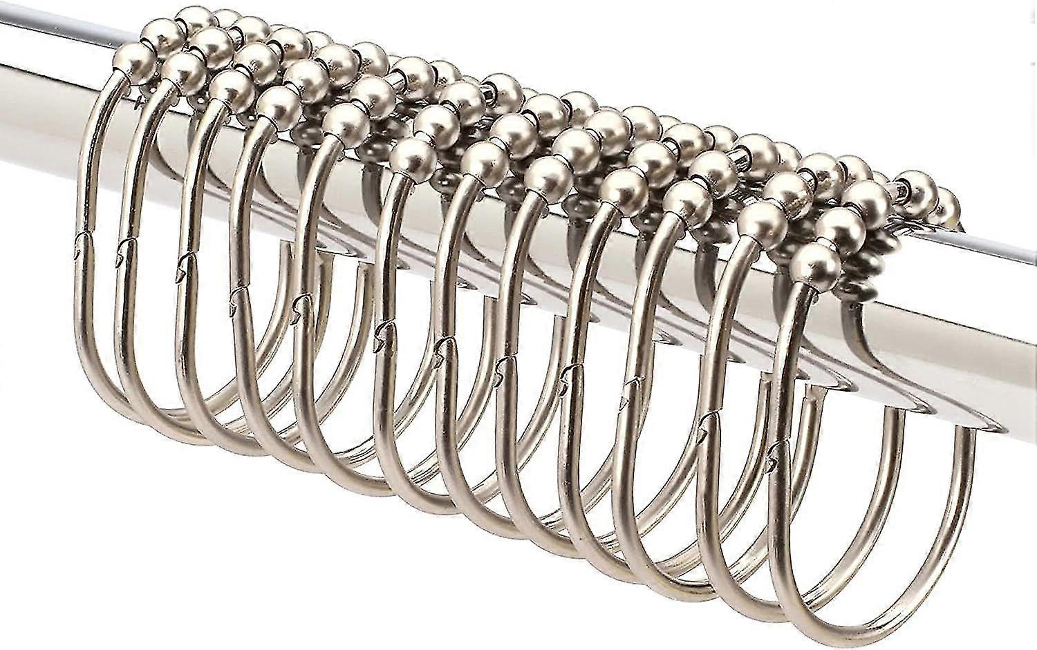 Wide Shower Curtain Rings/hooks Set, Decorative Satin Nickel Finish, Easy-glide Rollers, 100% Rust-proof Stainless Steel, Set Of 12 Rings