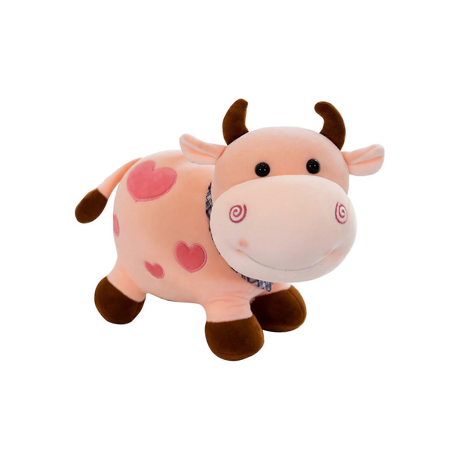 Zodiac Ox Plush Toy, Cute Calf Doll for Kids, Soft Cotton Stuffed Animal, Pink/Brown/White, 25cm