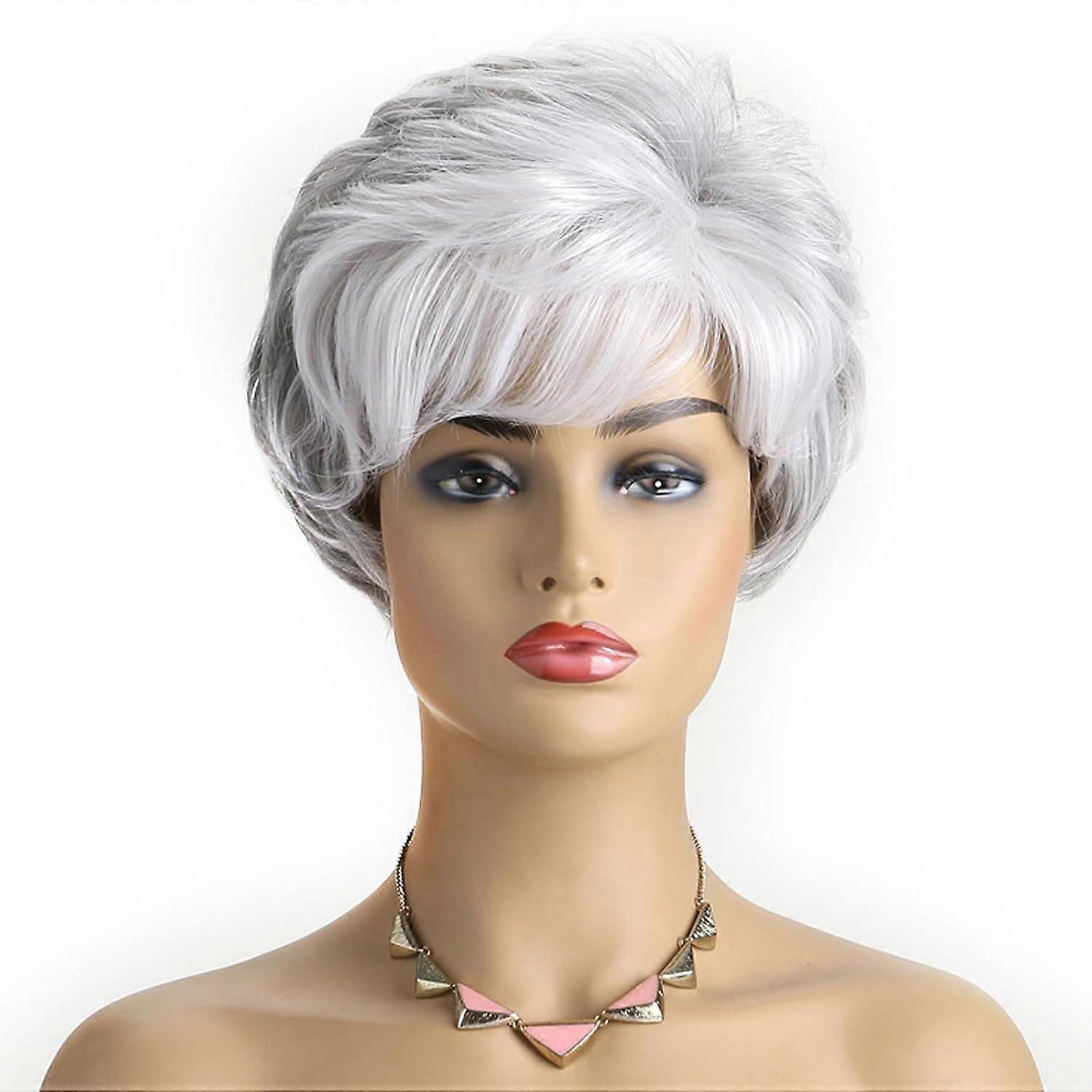 Short Grey Wigs for Older Women Layered Curly Grey Wig with Side Part Bangs