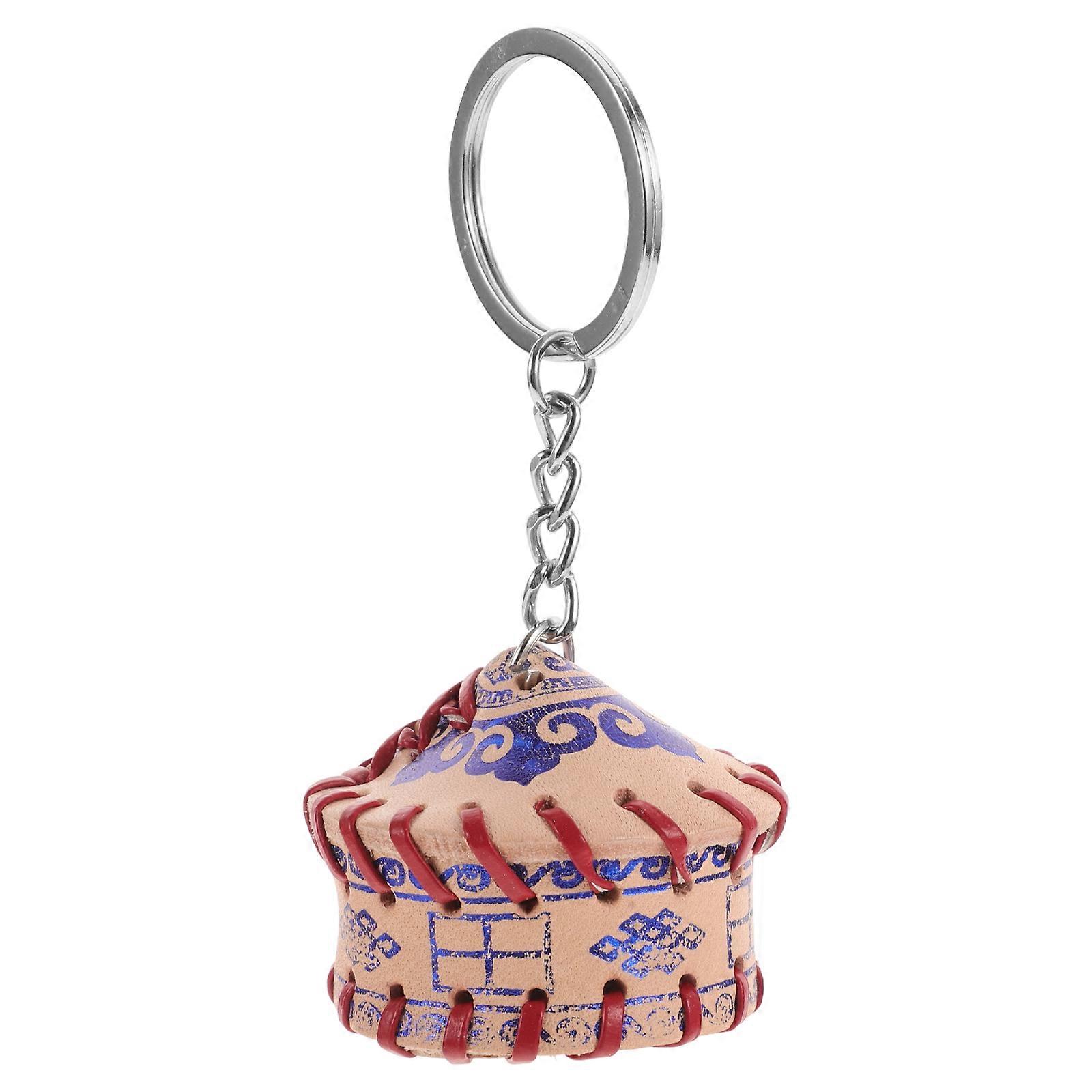 Multi Color Mongolian Yurt Keychain for Decoration Crafted from Cowhide with Blue Yurt Symbolizing Good Fortune 1.5 inch