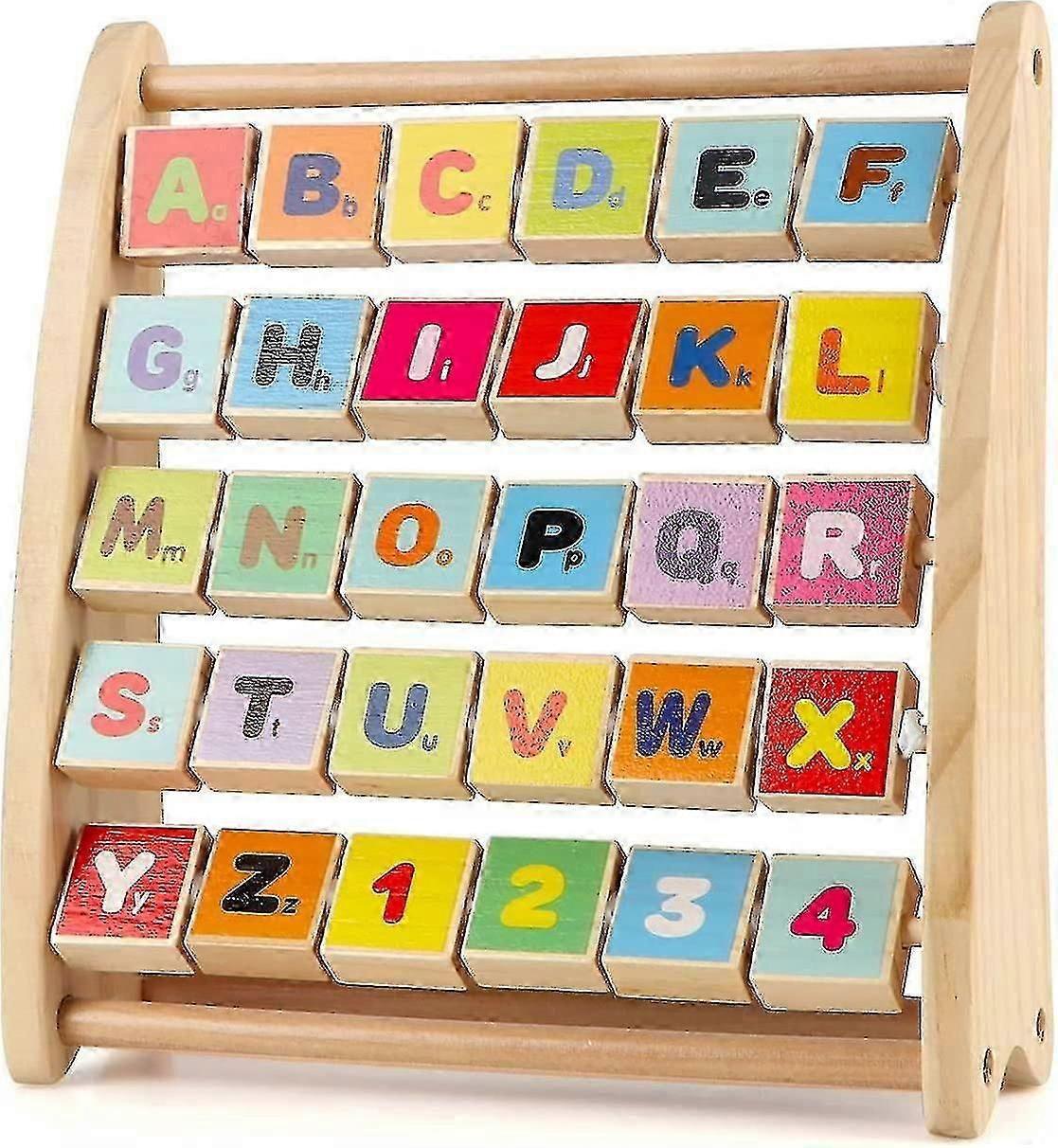 Alphabet Abacus For Toddlers, Wooden Abc-123 Abacus With 30 Letter And Number Tiles, Classic Educational Learning Toys For Baby Boys & Girls