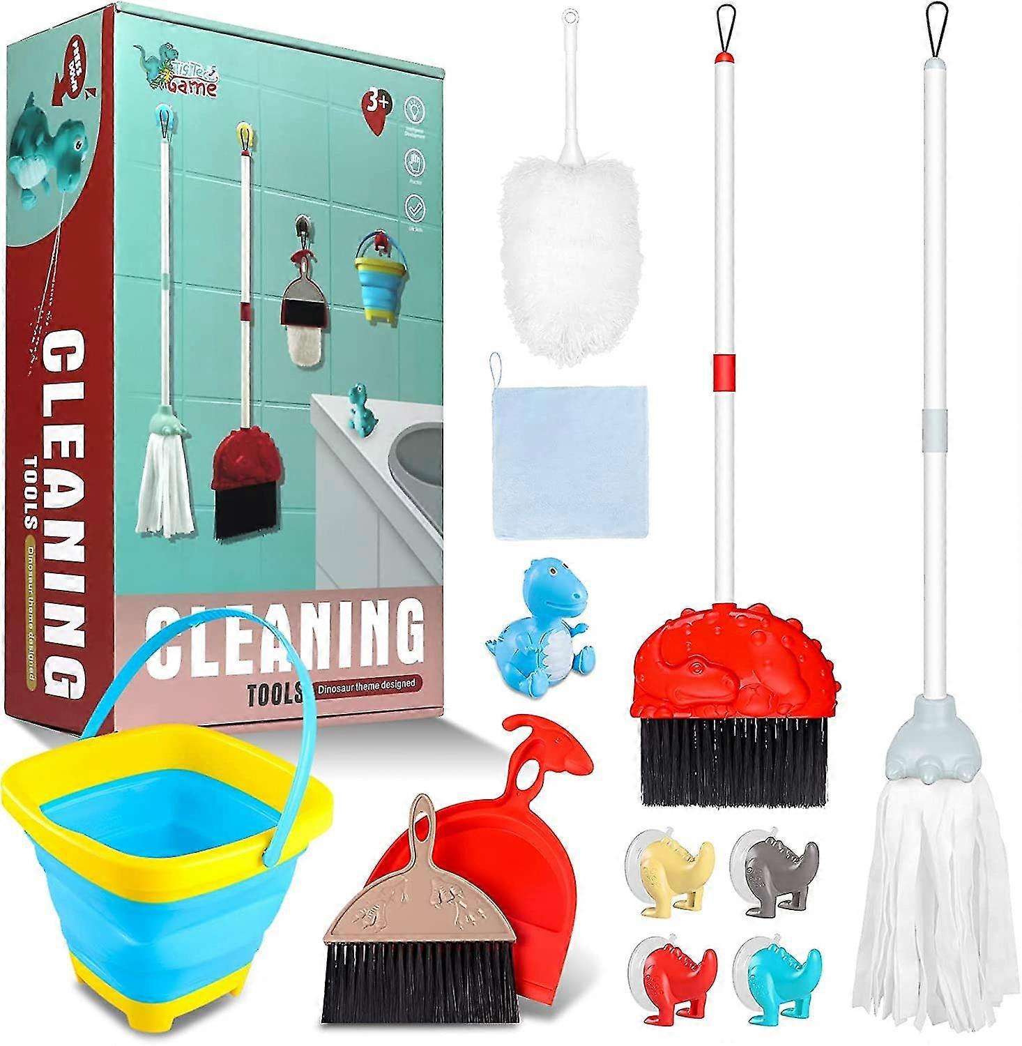 Kids Cleaning Set For Toddlers Boys Girls Baby Cleaning Toys For Toddler 12 Piece Include Broom, Mop, Bucket, Dustpan, Brush, Cloth And Dinosaur Sucke