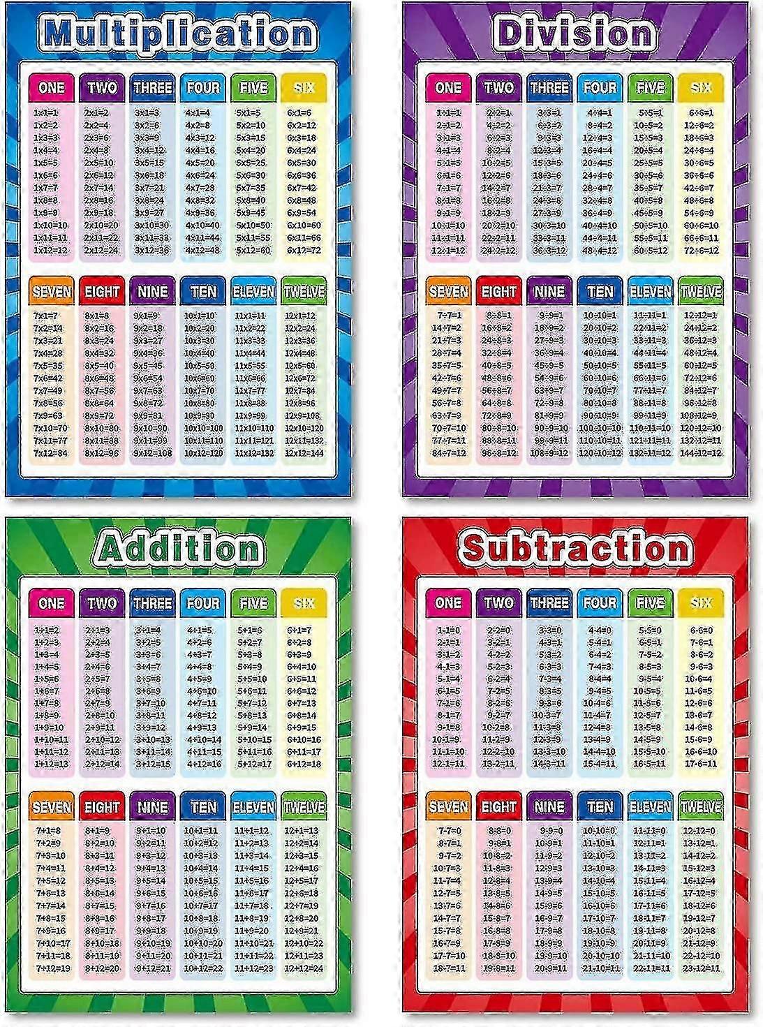 4 Pieces Educational Math Posters For Toddlers Kids With Glue Point Dot For Elementary Middle School Classroom, Teach Multiplication Division Addition