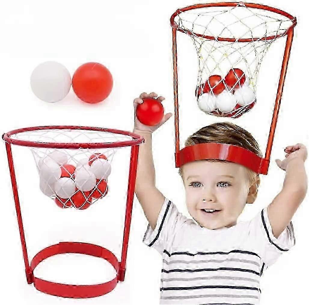 Overhead ball frame, more fun, easy to carry How to play: one child wears a basketball frame on his head, and another child or his parents throw the ball into the frame to cultivate parent-child affection. The child wearing a ball frame on his head can run and catch the ball to exercise his body Can be worn on the head (sticky strap design), Suitable for adults and children Suitable for indoor and outdoor play Package included: ball stand x1, ball x 20.