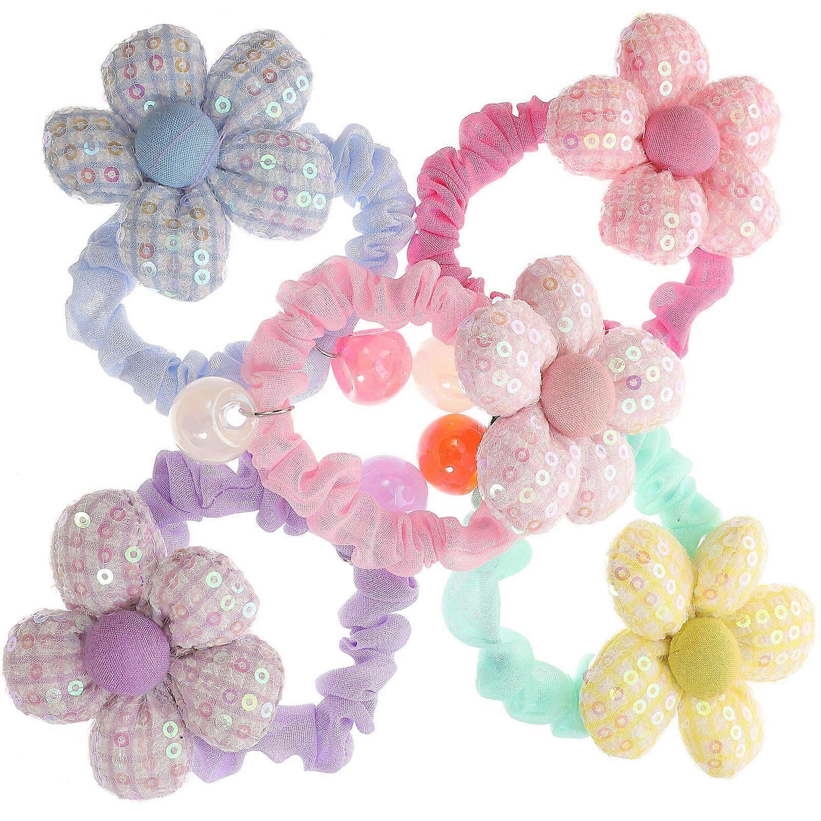 Toddler Girl Hair Ties Sequin Flower Hair Band for Kids School Activities Fabric Plastic 5Pcs