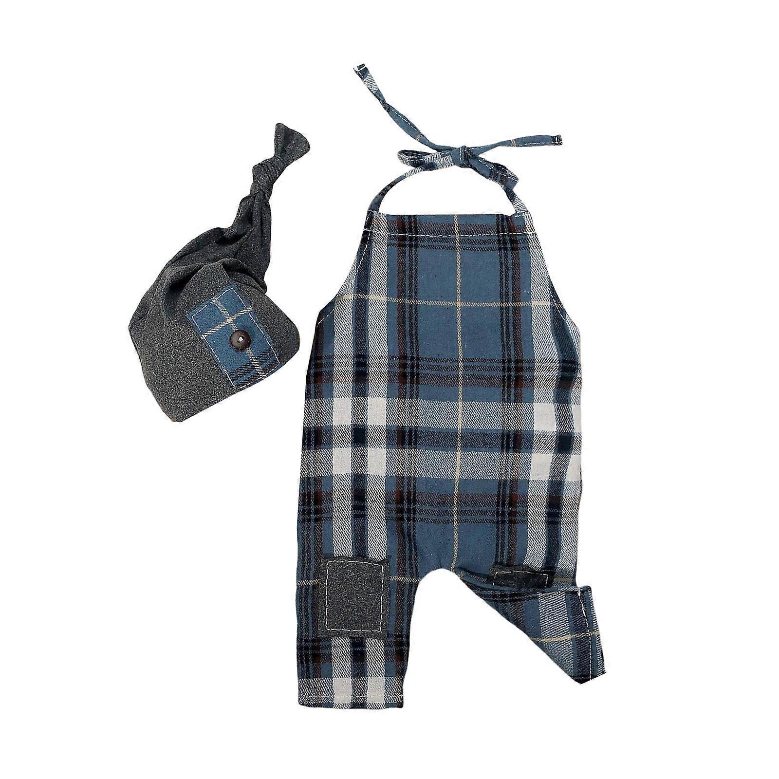 Newborn Boy Photography Outfit Set Baby Checkered Suspenders Pants with Long Tail Hat Newborn Photo Shoot Costume set M