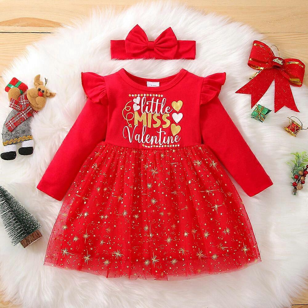 Toddler Baby Girls Little Miss Valentine Outfits Tulle Princess Dress Headband