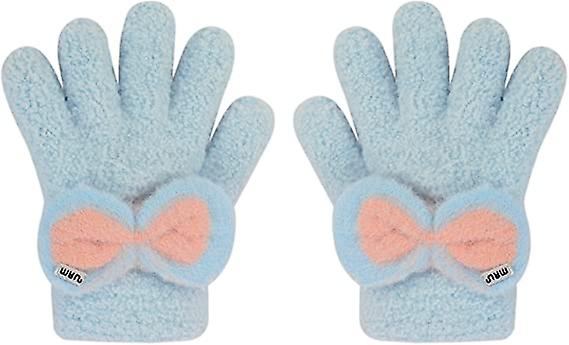 Toddler Kids Winter Warm Gloves Cute Bowknot Full Finger Knitted Gloves Stretchy Mittens For Little Girls Boys Ages 2-5