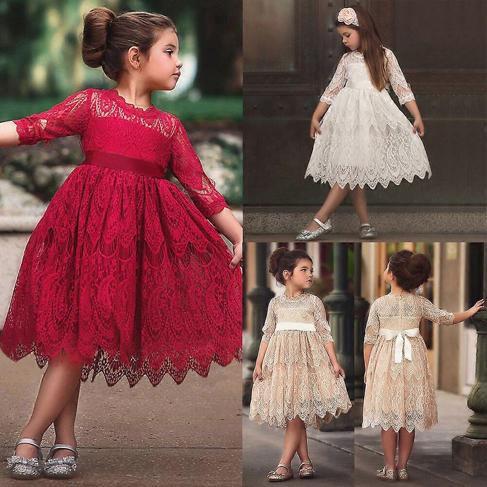 Toddler Kids Baby Girls Ruffle Lace Bow Party Dress Clothes Pageant Dresses