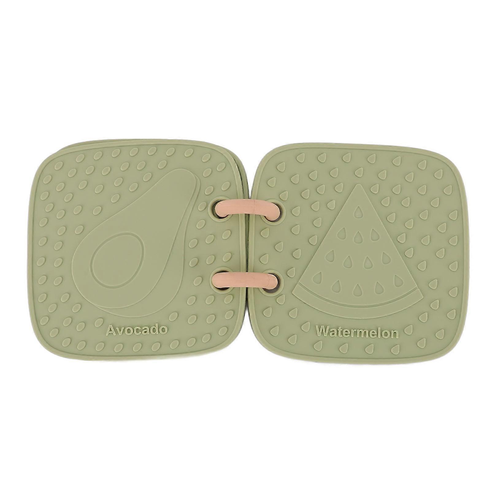 Toddler Silicone Book Fruit Pattern Double Sides Silicone Board Toy for Aged 0-6 Baby Bath Early Education Pea Green