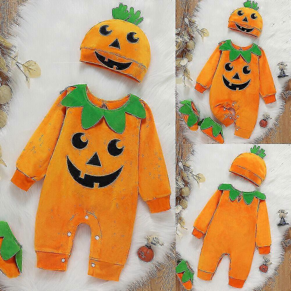 Toddler Baby Pumpkin Cutie Costume Halloween Fancy Dress Romper Socks Hat Outfit C