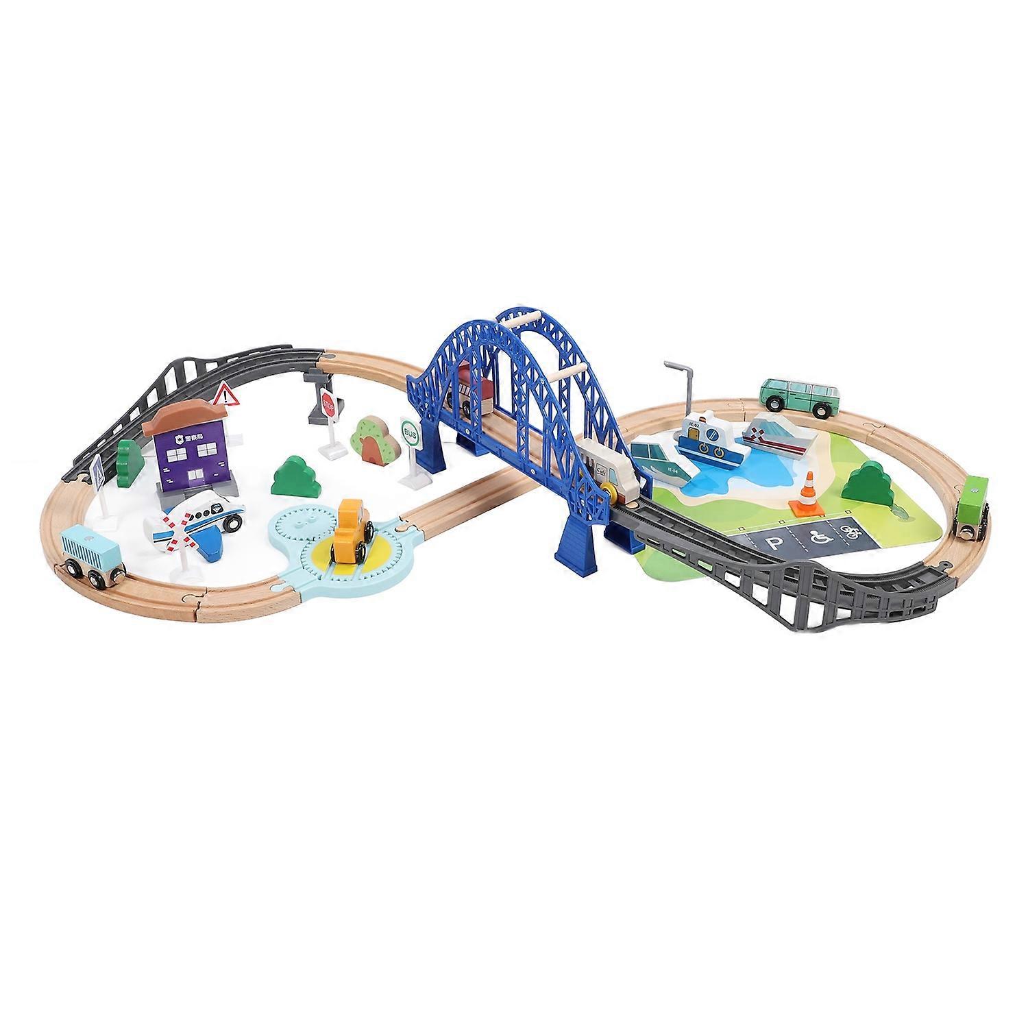 37pcs Wooden Train Set for Toddler Blue Bridge Electric Simulation Children Interactive Wooden Train