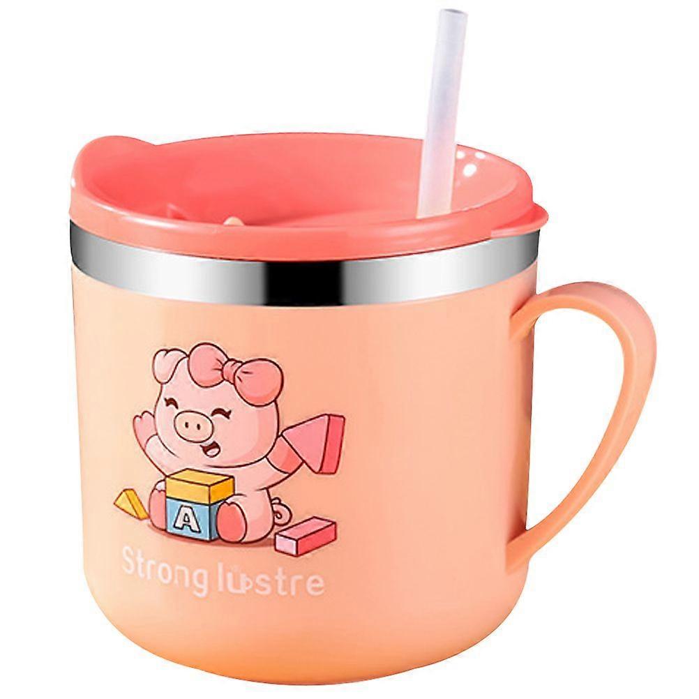 Toddler Use Cartoon Mug Sturdy Stainless Steel Water Cup With Straw Heat-insulation Baby Cup