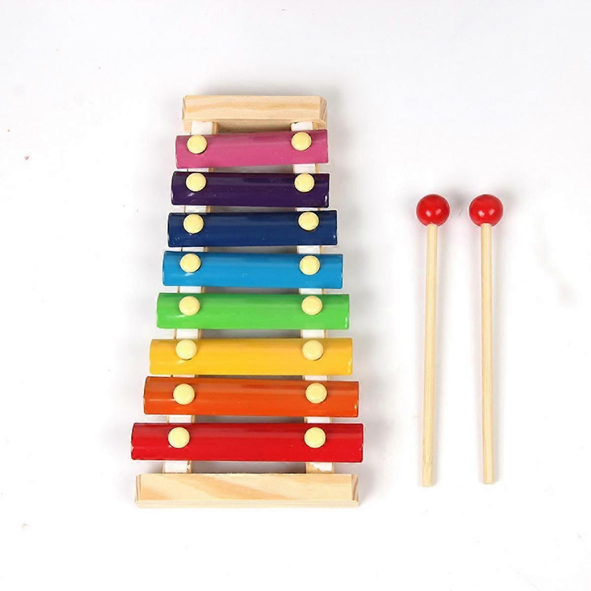 Toddler 8 Tone Natural Wooden Glockenspiel Xylophone with Multicolor Metal Bars Included 1 Set of Child Safe Wooden Mallets