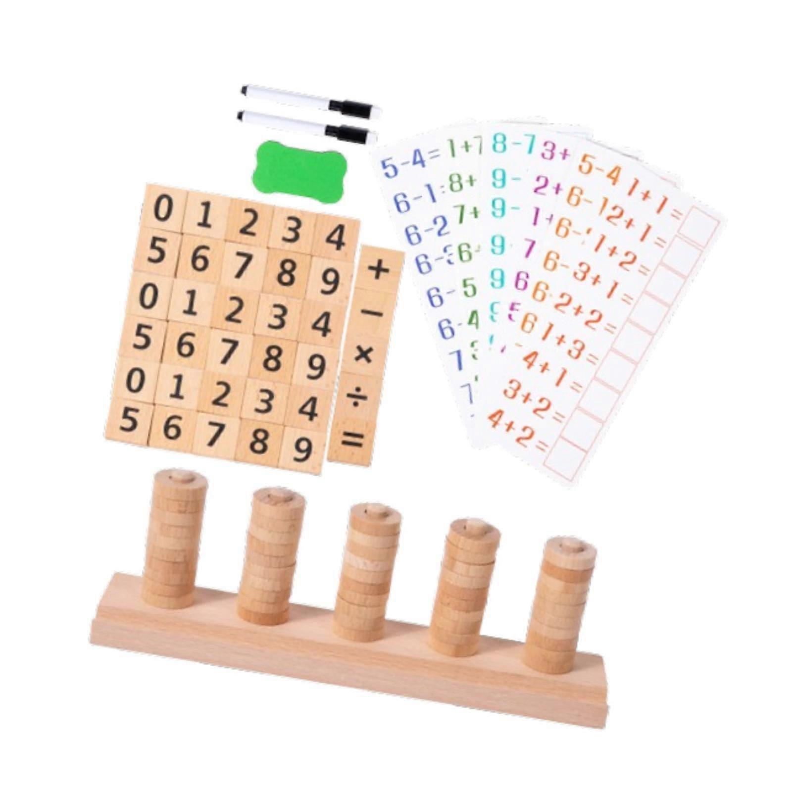 Description: Interactive Learning Tool: This educational toy set is designed to enhance your child's foundational math skills through engaging and interactive play. It focuses on number operations, helping children develop a strong sense of numbers and improve their addition and subtraction abilitiesMulti Sensory Experience: Combining visual and elements, this Kids Wooden Number count Toys set encourages math learning. The stacking feature aids in reinforcing arithmetic concepts, making math fun and accessible for young learnersComprehensive Set: The Math Manipulatives Toys set includes three complete sets of numbers 0-9, allowing for various arithmetic exercises such as number pairing and quick problem solving activities. This variety ensures a rich learning experience that keeps children engagedQuality Materials: Counting Stacker toy set is made from carefully selected wood, the components is sturdy and secure for children to handle. The non painted solid wood pieces are designed to ensure they remain secure during playingCompact Design: Math Counting Toy, with dimensions tailored for little hands, this set is easy to store and transport, making it great for both home use and travel learning sessions Size Chart: Main body:24.4cmx5cmx8cm/9.61inchx1.97inchx3.15inchWooden block:2.5cmx2.5cmx0.5cm/0.98inchx0.98inchx0.20inchCard:9cmx25cm/3.54inchx9.84inchPen length:11.2cm/4.41inchSponge:4cmx7cm/1.57inchx2.76inch Package Includes: 1 set Math Counting Toy Note: 1.This is not infant toy, please take away from children to avoid eating.2.Please allow slightly errors due to manual measurement and different monitors.