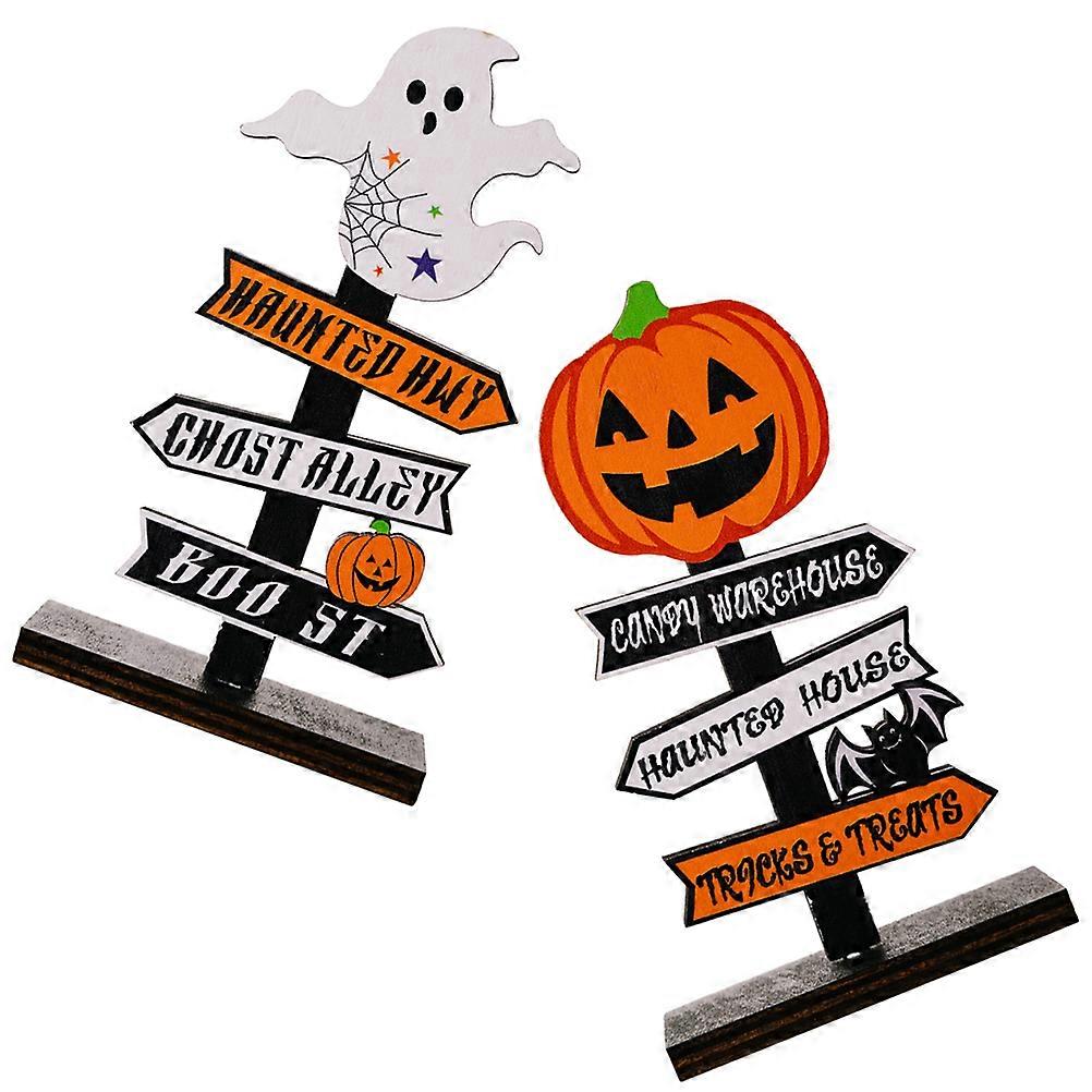 Halloween Wooden Table Centerpiece with Ghost & Pumpkin Designs Festive Home and Classroom Party Decoration Wood Sign Set of 2