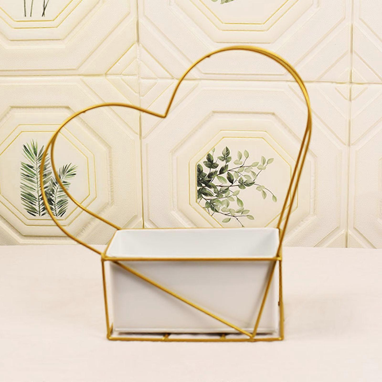 Geometric Flower Stand Vase Portable Iron Rack Wedding Gifts Heart Shape Golden Love Galvanized Tabletop Plant Pot