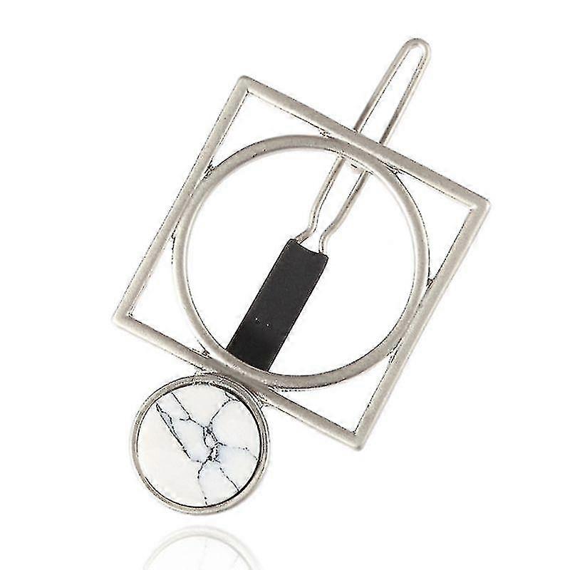 Geometric Square Circle Creative Hair Clip Ladies Faux Marble Stone Ring Embelli