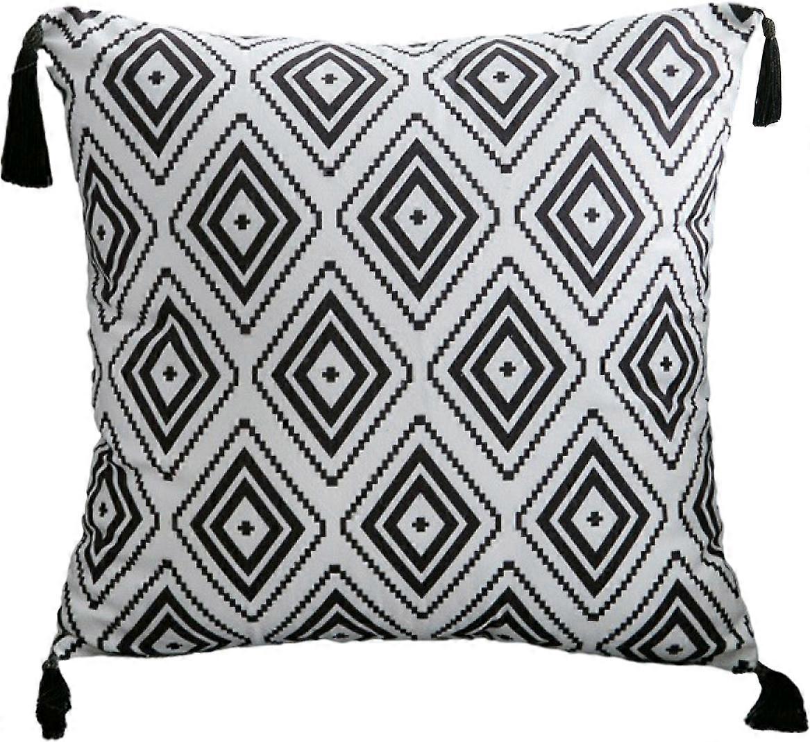Geometric Decorative Pillow, Fringe, Rectangle
