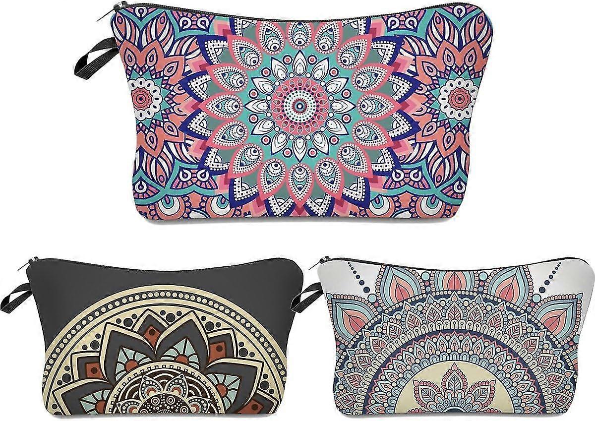 Roomy Cosmetic Bag,3 Piece Set Waterproof Travel Toiletry Pouch Makeup With Zipper (mandala Flowers)
