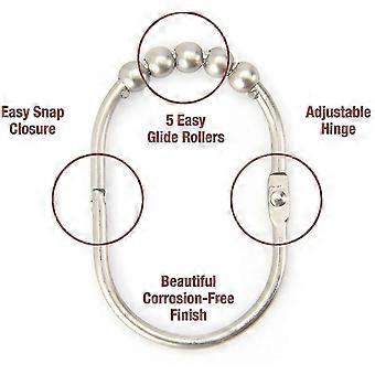 広いシャワーカーテンリングフック、ステンレススチールセット12