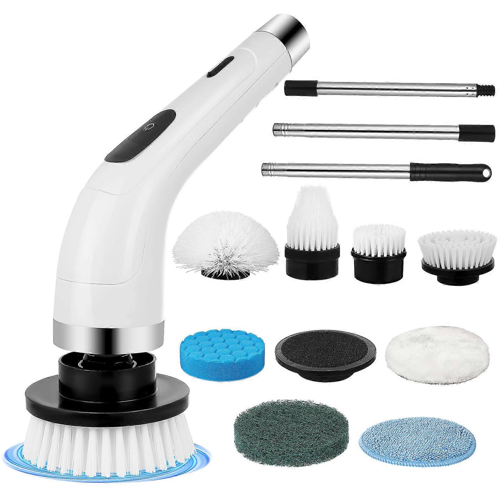 This multi-functional electric cleaning scrubber is a practical and powerful cleaning tool for any household. With its extended handle included and cordless design, it makes cleaning a breeze, easy to reach and floors. This scrubber also comes with a variety of brush heads to meet all your cleaning needs. Features -Color:Assorted Color -Material:ABS -Size:34.50X20.00X9.00cm/13.56X7.86X3.54in -Revolving speed: 320-370rpm -Rated voltage: 3.7V -Power: 25W -Endurance: 50-90min - Labor-saving cleaning: This powerful scrubber is designed to make cleaning a breeze, with its efficient cleaning capabilities that save you time and labor. - Extension rod: Assemble the extension rods to this electric cleaning scrubber, making cleaning comfortable and convenient experience. - No cords: This cordless cleaning scrubber allows for easy maneuverability and flexibility during use, perfect for cleaning large areas or outdoor spaces. - Adjustable modes: Press the button and choose the proper cleaning power according to your actual cleaning needs, offering much flexibility. - Multiple brush heads: With different brush heads included, you can tackle a variety of cleaning tasks with ease, from scrubbing windows to cleaning tile floors. Package list: 1 x electric scrubber 8 heads 1 -C cable 1 x hanging hook 1 x extension rod