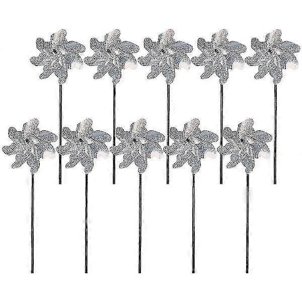 10-pack Reflective Pinwheels for Garden, Sparkling Pinwheels, Scare Birds & Animals - Perfect