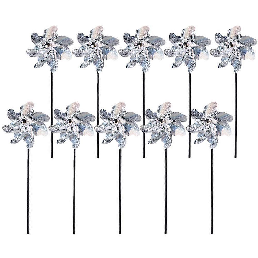 10 Pack Reflective Pinwheels for Yard and Garden Sparkly Pin Wheel Scare Birds Animal Away Wind Spinner
