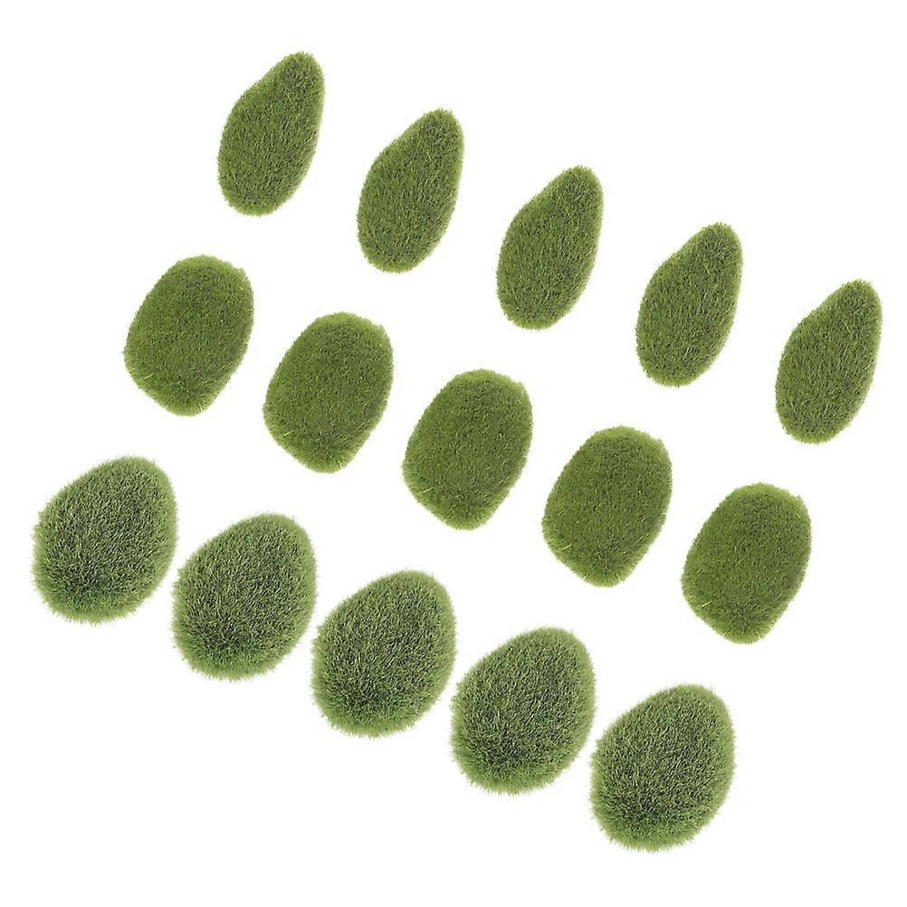 15Pcs Lifelike Artificial Moss Stones For Garden Layout Ornaments 5.00X4.00X3.00cm Green High Simulation Technology