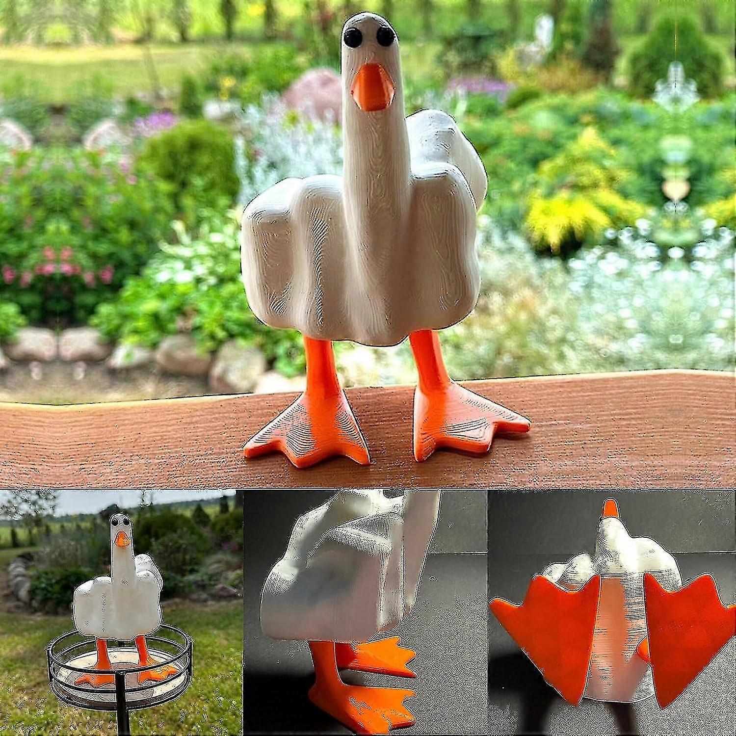 Garden Statues Duck Figure Ornament, Funny Middle Finger Duck Art Sculpture Resin Ducks Statues Dcor Indoor Outdoor Decor