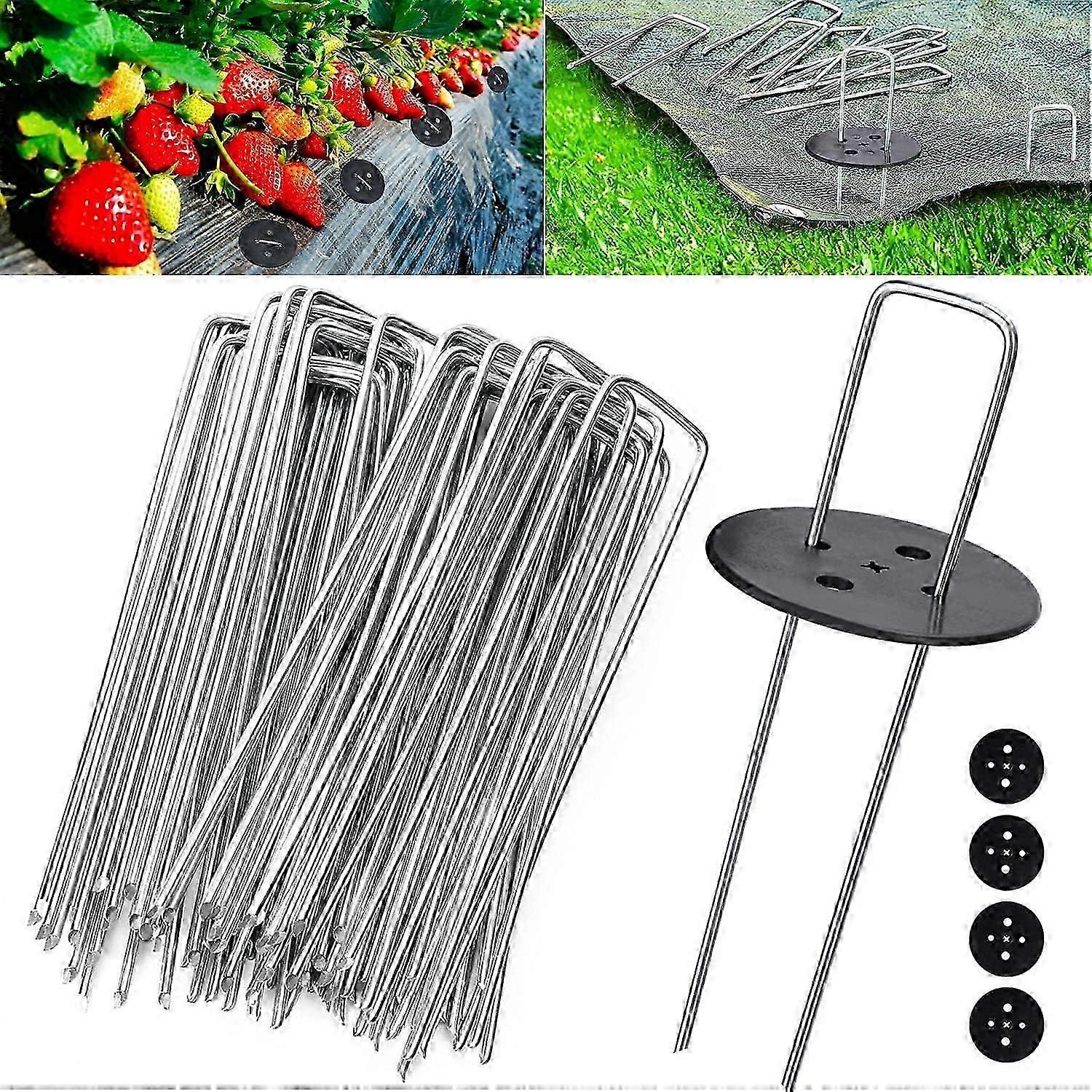 Description Extra-durable Garden StakesHigh performance T-shaped garden securing pegs are the professionals first choice for securing weed membrane, landscaping fabric, netting, fence, theground sheets, outer fleece and a wide range of other landscaping materials firmly to the ground. These high quality T shaped garden fixing lawn stakes provide excellent tension and hold in the ground. Sharp Beveled EndsThese garden stakes end with extra-sharp metal bevelled ends, making them suitable for use on both soft and hard ground. Make it easier/quicker to fully insertinto the ground with less force and without bending when pushed into lawn/hard ground. These garden fixing pegs also allow for faster DIY and landscaping thanks to their capacity. Quick Attachment and RemovalThe netting garden stakes provide excellent tension and hold in the ground, plus theyve been galvanized to provide even higher rust protection, and the barbless design wontmeans no more ruined fabric when removing pegs. If the ground is harder, please firmly grasp the peg and gently tap into the ground with a mallet, excessive force may cause the pegs to bend in stony ground. Multi-Function Garden StakesGarden securing stakes are ideal for a wide range of other outdoor uses, such as securing pipes, garden hoses and irrigation tubing along the ground. They can alsobe used with synthetic grass erosion control covers, grass seed mats and to help keep new plant cuttings in place to aid in more efficient rooting. Specifications2.5mm in diameter, 15cm in length; 2.5cm wide; Packing quantity: 50xT-shaped ground stakes, with 4pcs buffer washer, it can not only fix the four corners of the lawn beautifully, but also make it easierto remove. Trapezoidal design for extra tension in the ground. Bevelled ends for quick and safe mounting in the ground. Extra-durable garden stakes High performance T-shaped garden fixing pegs are the professionals first choice for firmly fixing weed membrane, landscaping fabric, netting, chicken wire, ground sheets, fleeceexternal and a wide range of other landscaping materials. Multifunctional Garden Stakes Garden fixing pegs are ideal for a wide range of other outdoor uses, such as fixing pipes, garden hoses and irrigation tubing along the ground. To help keep new plant cuttingsin place to aid in more successful rooting. Sharp Beveled Ends These garden stakes end in very sharp beveled ends made of metal, making them suitable for use in soft and hard ground. Make it easier/quicker to fully insert into the ground with less forceand without bending when pushed into lawn/hard ground.