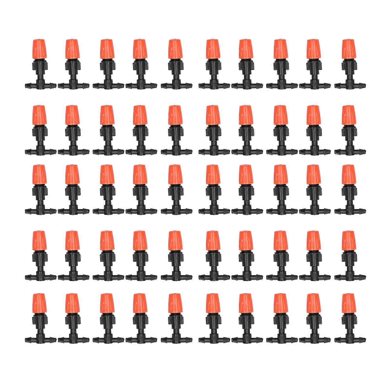50Pcs Tee Connectors with Orange Adjustable Micro Atomizing Nozzles for Garden Greenhouse Irrigation