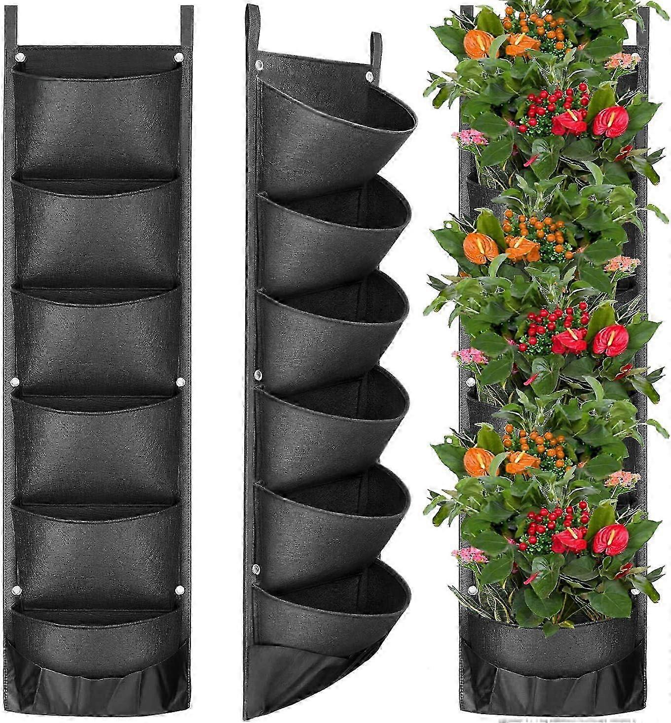 Updated 6 Pocket Vertical Wall Planter Hanging Bags for Garden Lawn Fence Plants