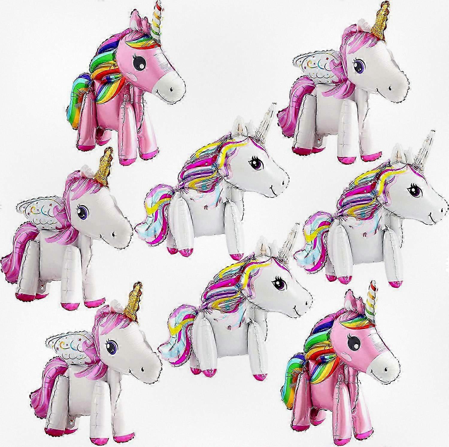 Set of 8 Free Standing Unicorn Balloons for Garden Decor - 80cm, Perfect for Girl's Birthday Celebrations | Pastel Unicorn and Rainbow 3D Ba