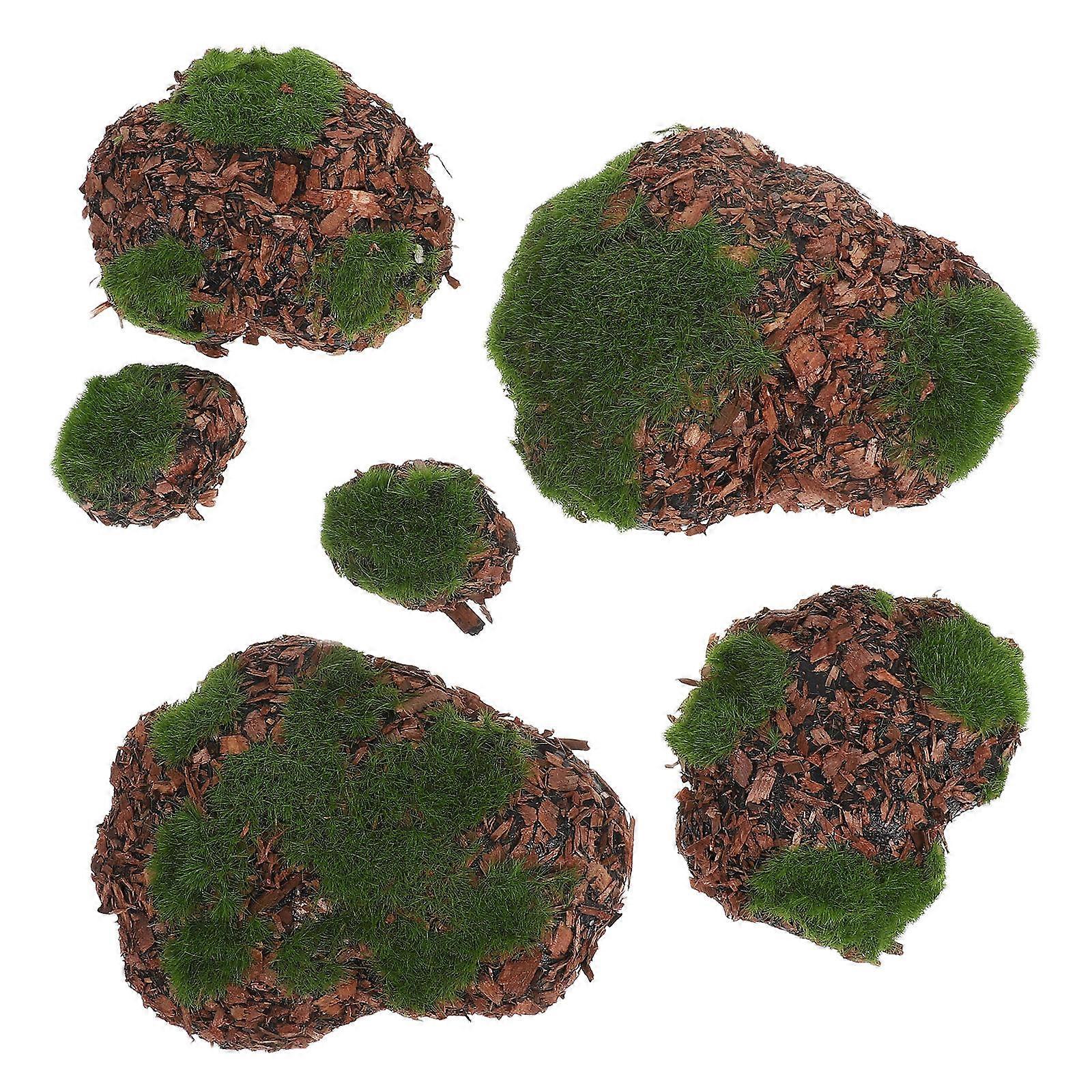 Garden Landscape Decoration Simulation Moss Covered Stones For Indoor Decor 6Pcs