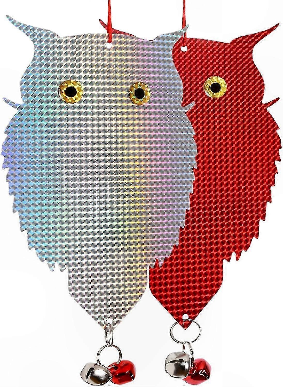 Reflective Owl Decoys with Bells for Garden Bird Deterrent, 2 Pack Outdoor Hanging Scare Pigeon Devices
