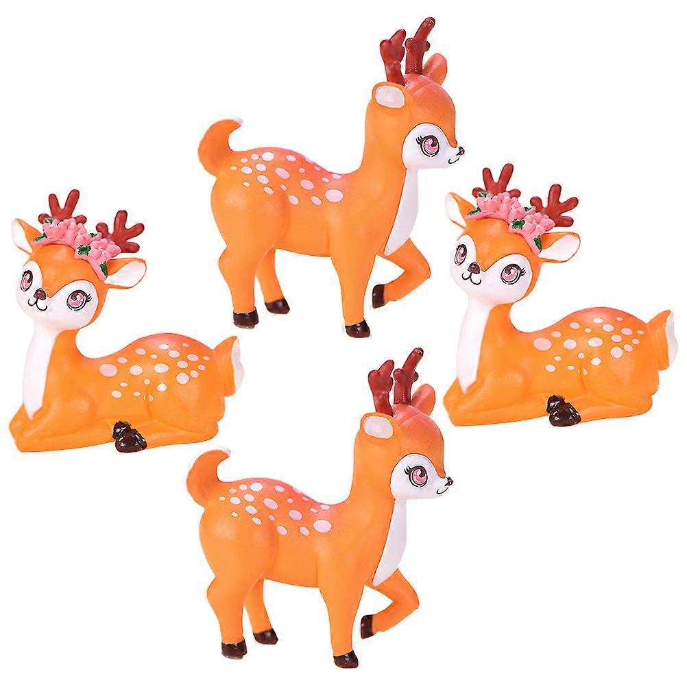 Garden Deer Adornment Decoration 4Pcs Micro Landscape Home Decor Cartoon Ornaments Orange Color