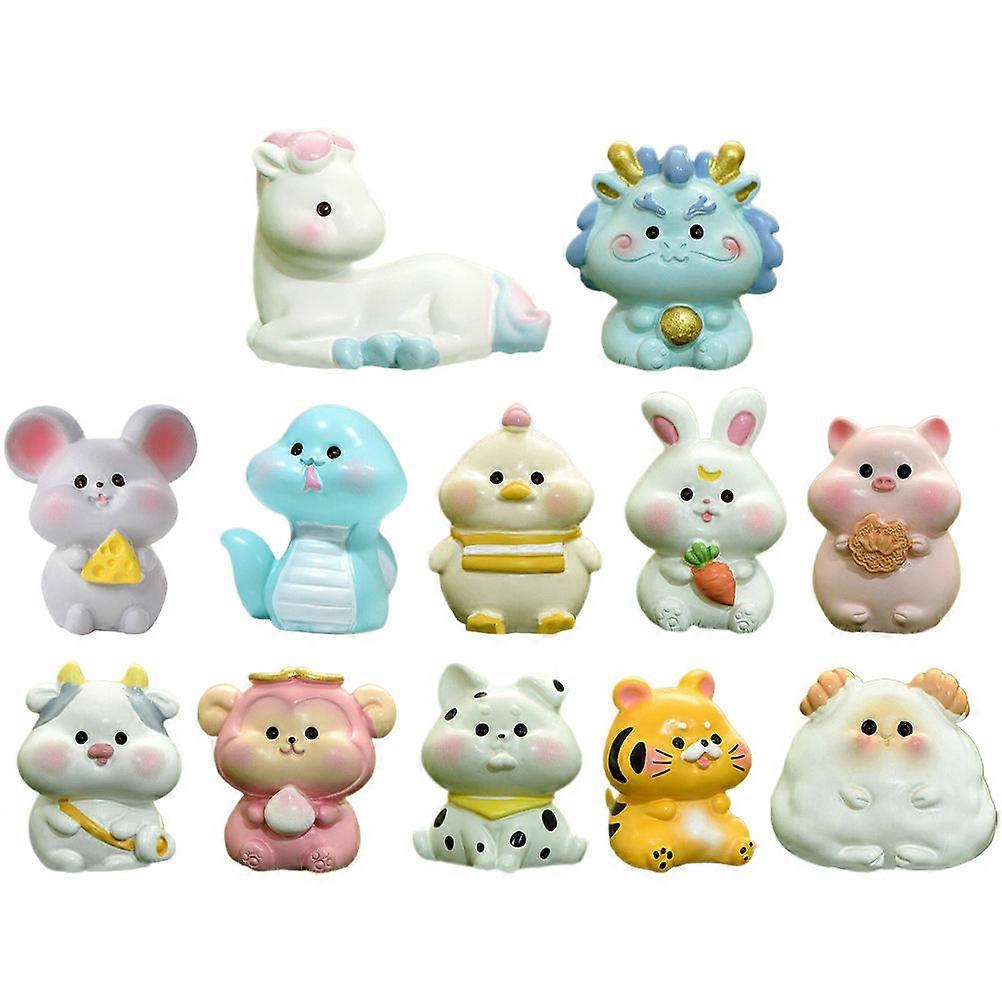 12pcs Animal Shape Ornaments for Garden DIY Miniature Chinese Zodiac Figures Random Style