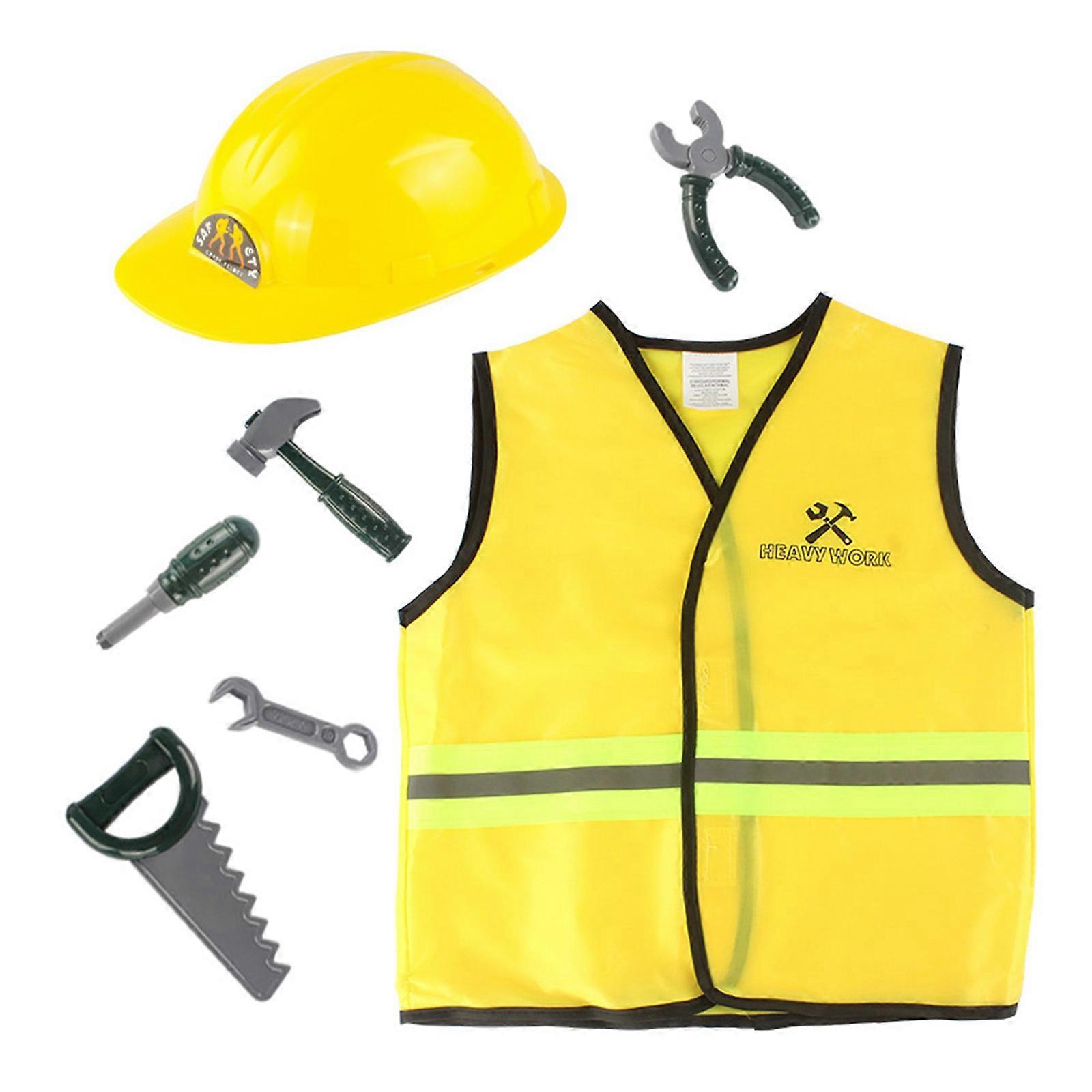 Construction Worker Costume Role Play Tool Toy Set for Architecture Role Play,Halloween Party,Carnival and Birthday Yellow
