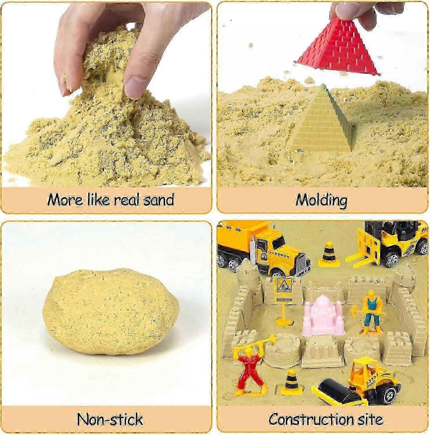 Construction Sensory Bin, Kids Play Sand Art Kit with 2.2lbs Magic Sand, Molds, Shovel