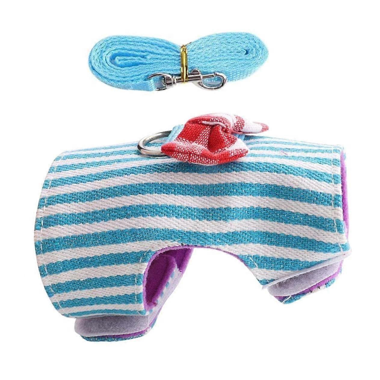 Bunny harness with bow Adjustable pet harness for small animals, suitable for parties, hamsters, guinea pigs, and blue striped S.