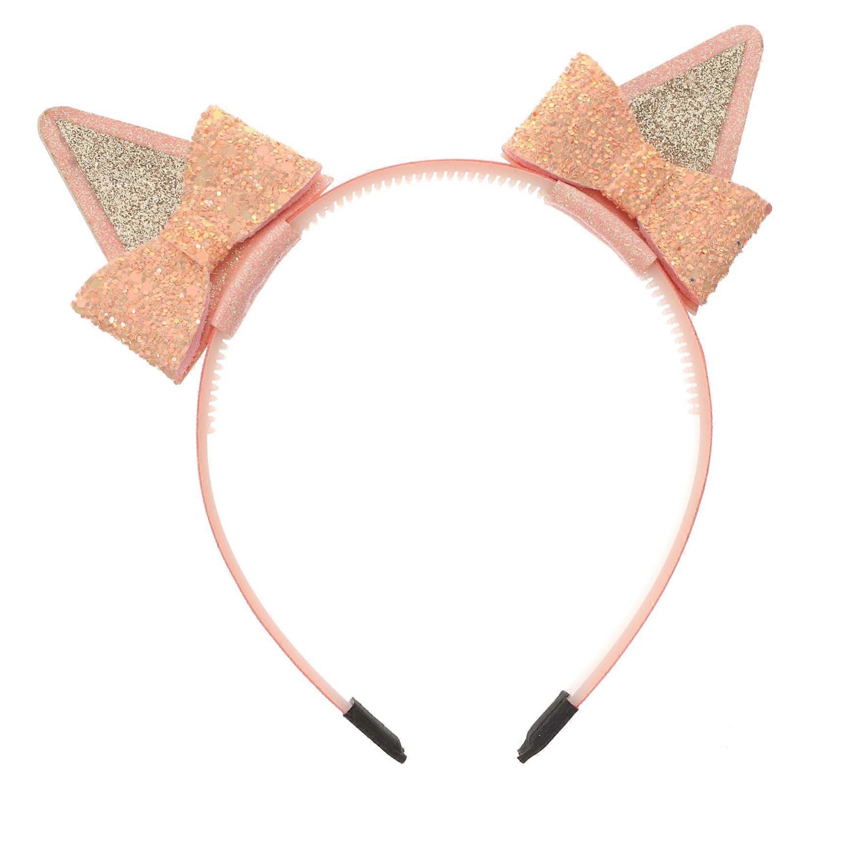Cat ears headband with bow, cute hairband for girls for costume parties and holidays, lightweight and easy to wear, pink
