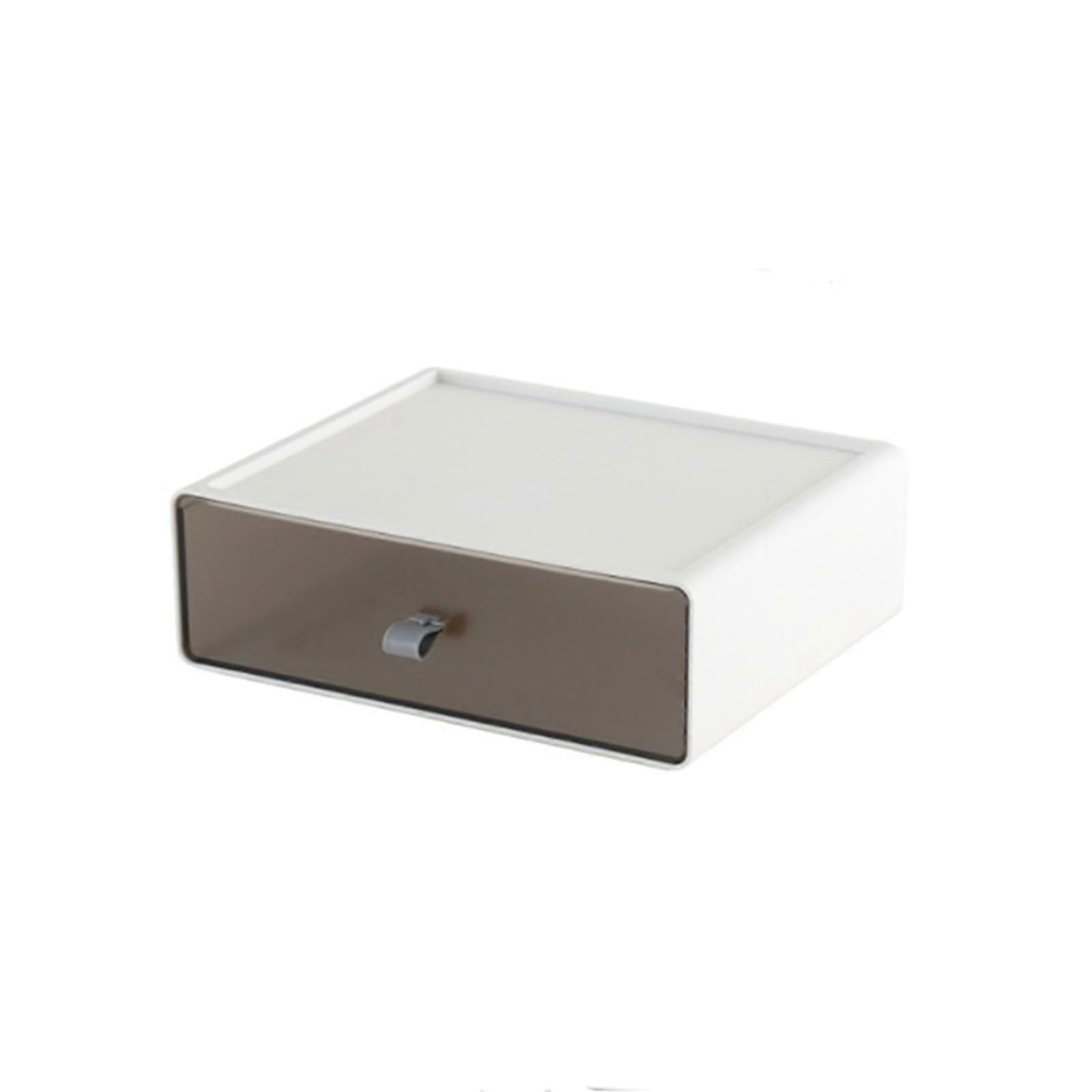 Drawer box, desk organizer with drawers for office supplies, cosmetics (White Single Grid)