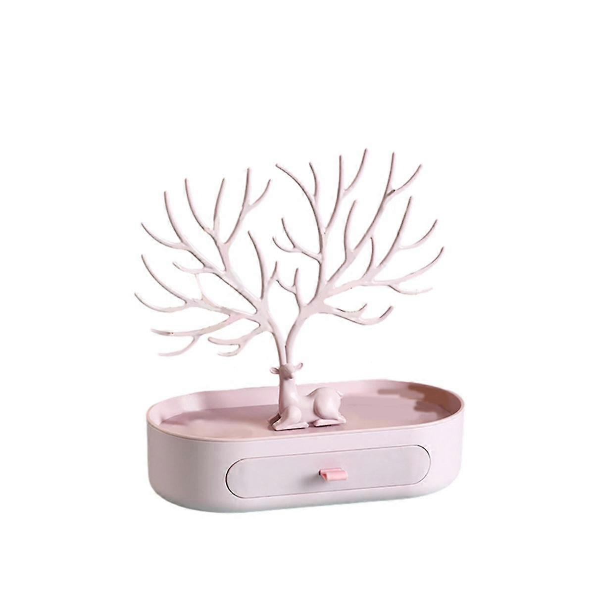 Antlers Jewelry Display Stand with Drawers,Necklace Earring Jewelry Organizer Display Stand,Deer Jewelry Rack,Pink
