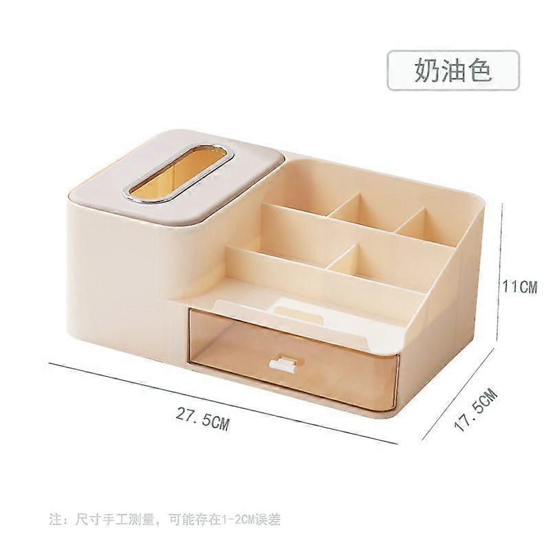 Desk Organizer With Drawer: Multi-Functional Tissue Box Holder - Cosmetic Lipstick Storage Pen Holder - Desktop Organizer For Makeup Stationery And Sk